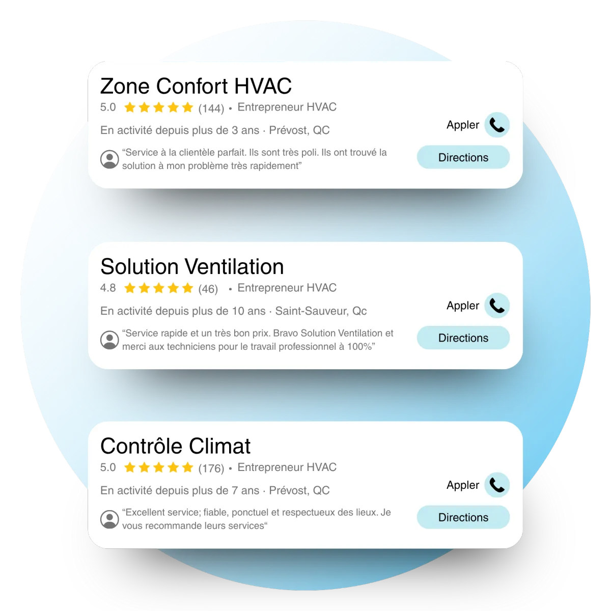 Soyez la compagnie de ventilation que tous le monde de la région voit. Vous faites le chauffage, la ventilation et la climatisation. Nous, on s’occupe de votre marketing. C’est ça l’efficacité.